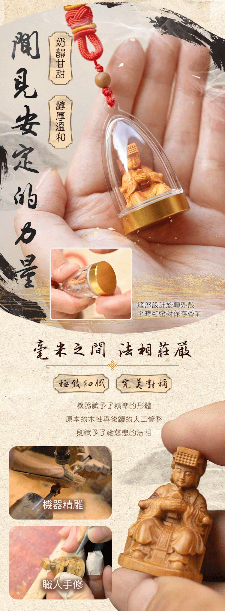 以特有的溫潤木香與慈悲法相,為您帶來隨身的安定與庇佑。
