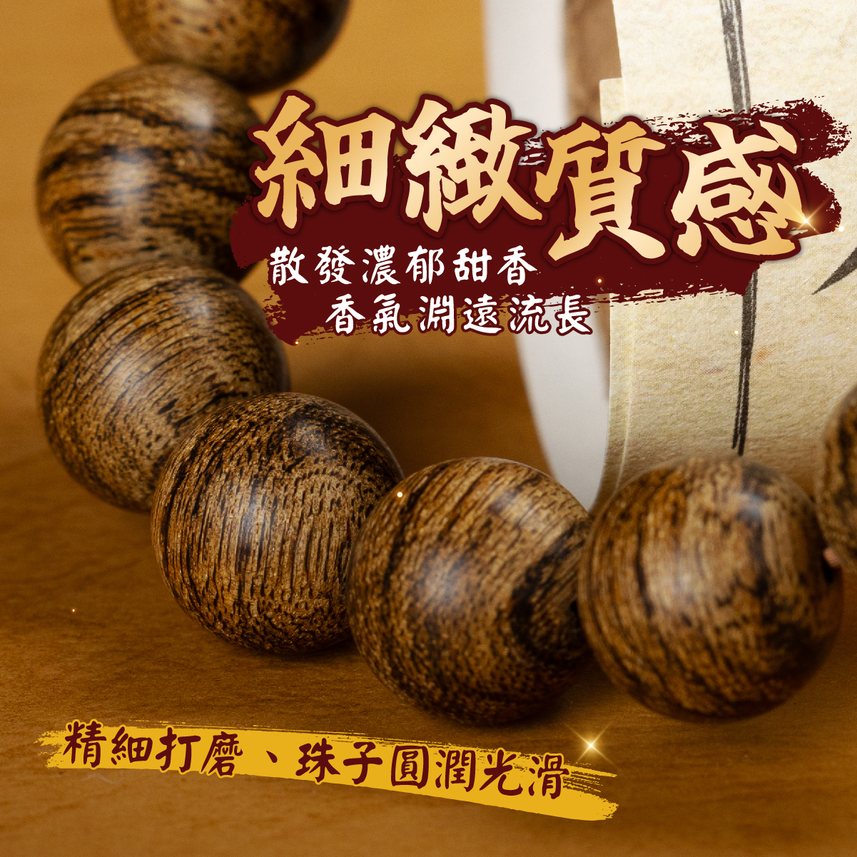 加里曼丹沉香原料搭配台灣工藝,每顆珠子紋理獨特,具有高收藏價值