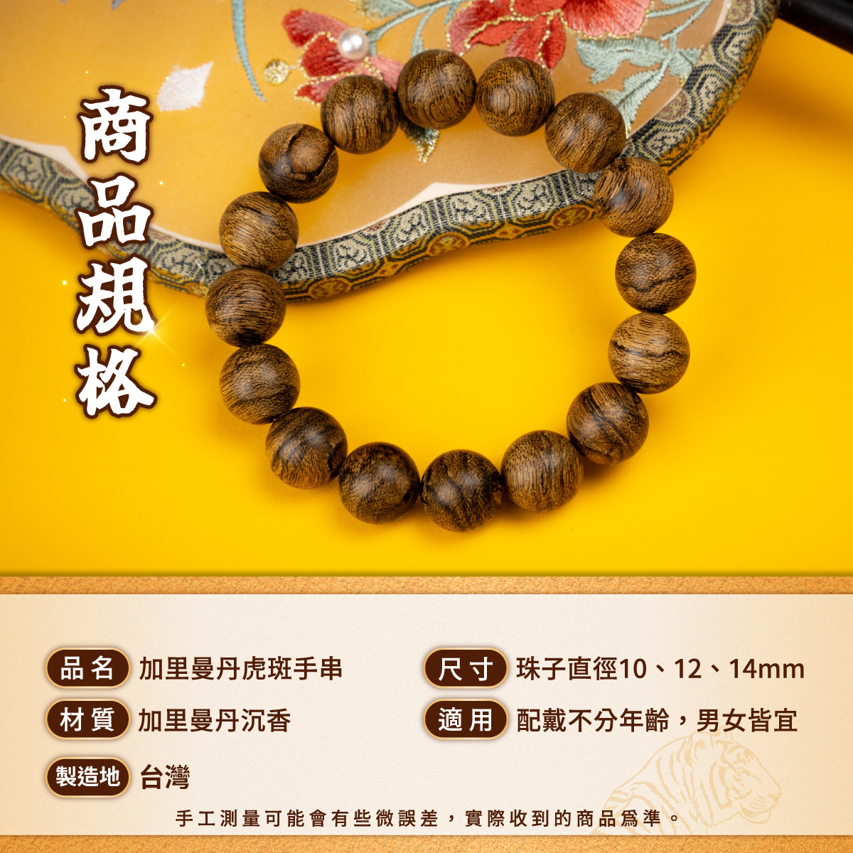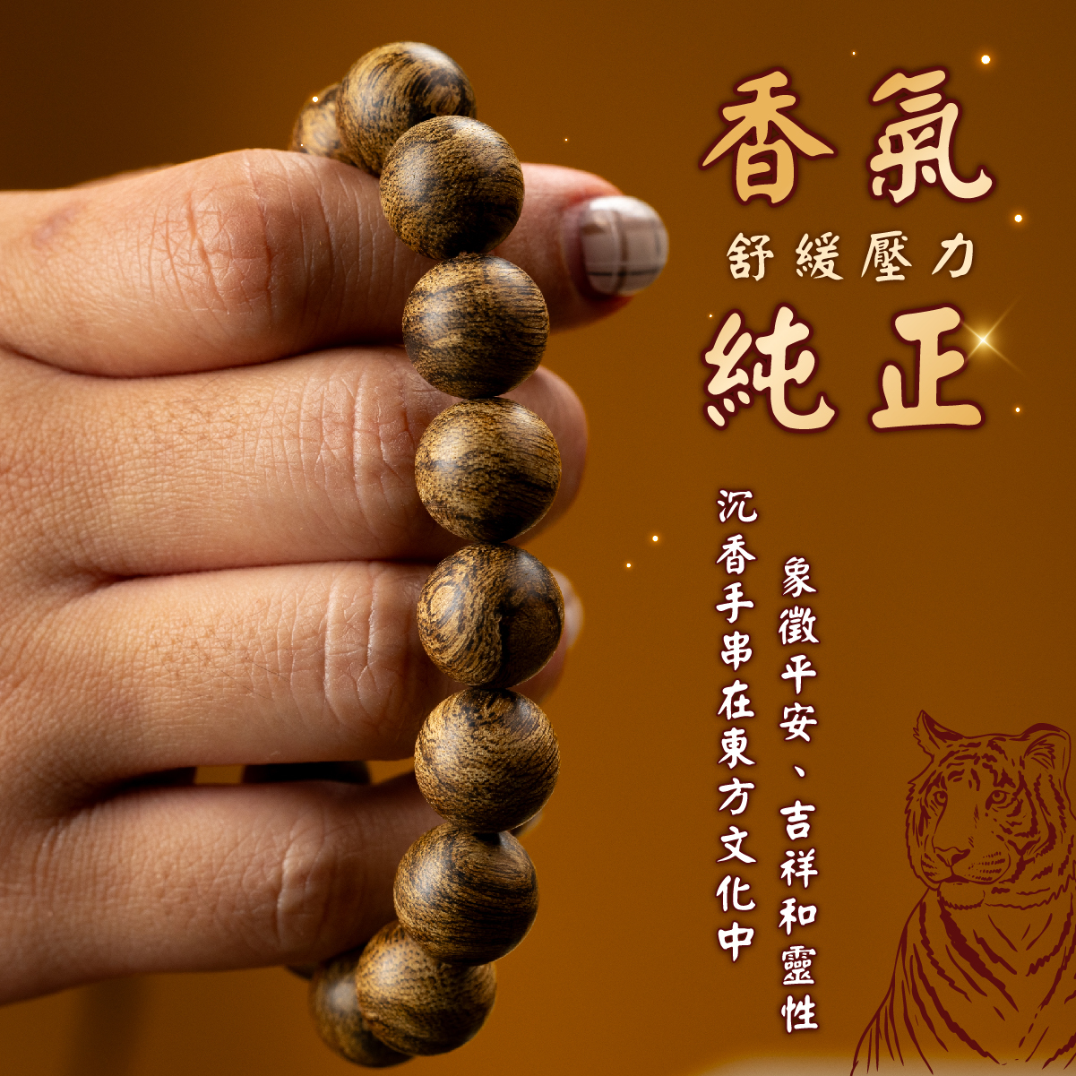 手串珠子皆由台灣工匠精細打磨,完美呈現沉香的天然質感與虎紋之美