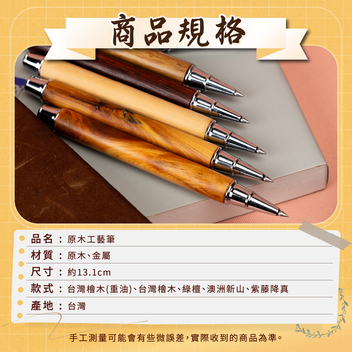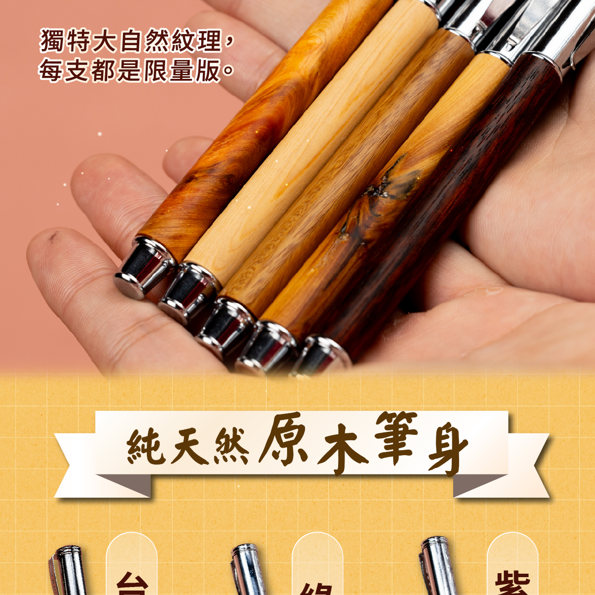 此產品由天然原木製造,每支筆的筆殼紋理皆獨一無二。