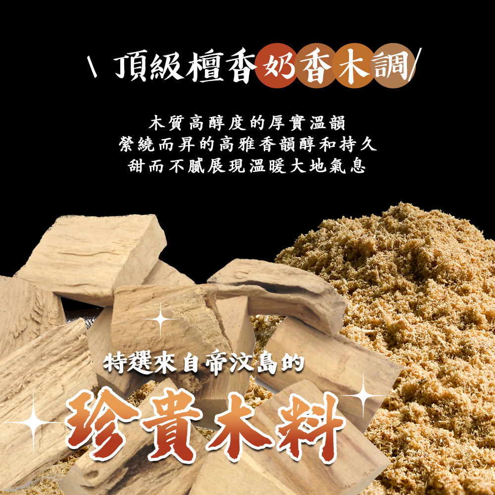 甜而不膩伴隨木韻漸入溫暖氛圍,香韻厚實高雅、層層堆疊,使人安心凝神、沉穩心緒,適合用於供佛及淨化磁場。