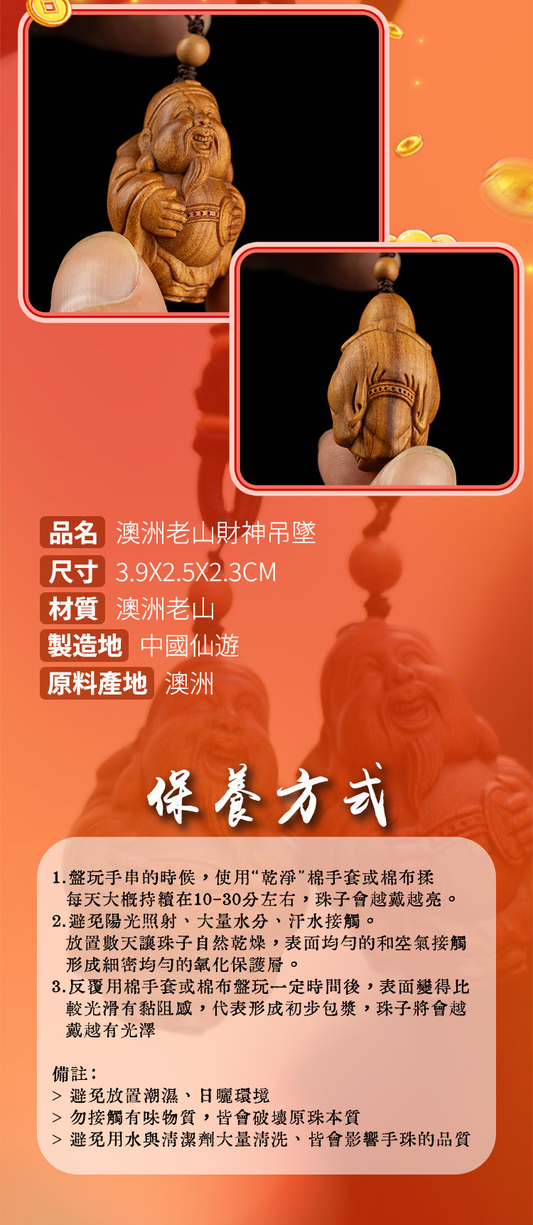 澳洲老山屬於天然原木,其製品在手工製作與雕刻過程中,表面難免留下輕微的打磨痕跡或天然木質特徵