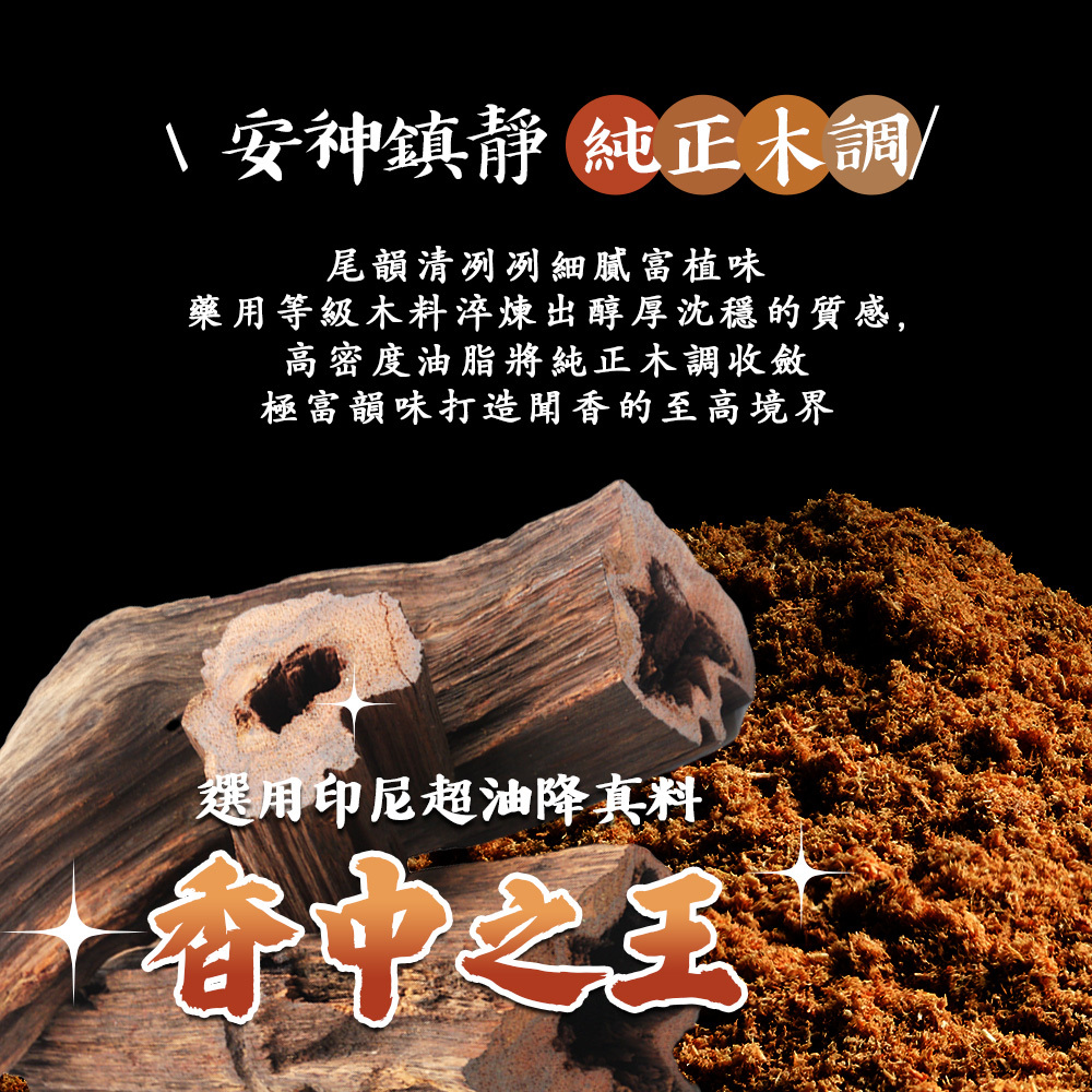 整體濃厚溫潤,香調極富韻味,細品如入空之想像,具鎮心凝神作用,適合用於供佛及冥思。