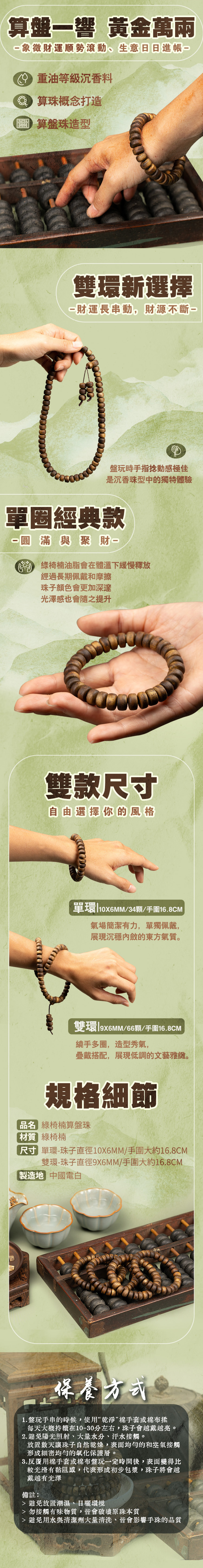 🤘頂級綠奇楠打造成獨特的算盤珠造型,寓意「算盤一響,黃金萬兩」,