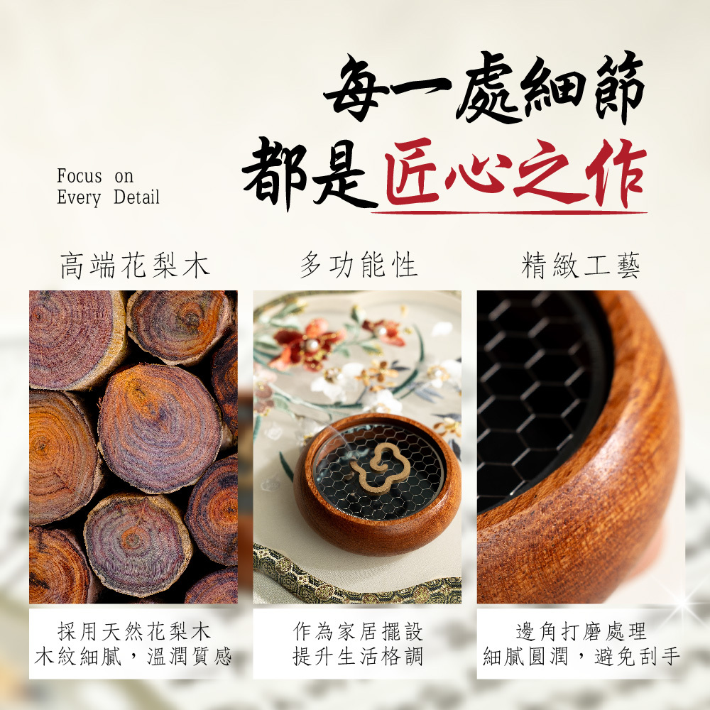 選用優質花梨木,散發出淡淡木香。